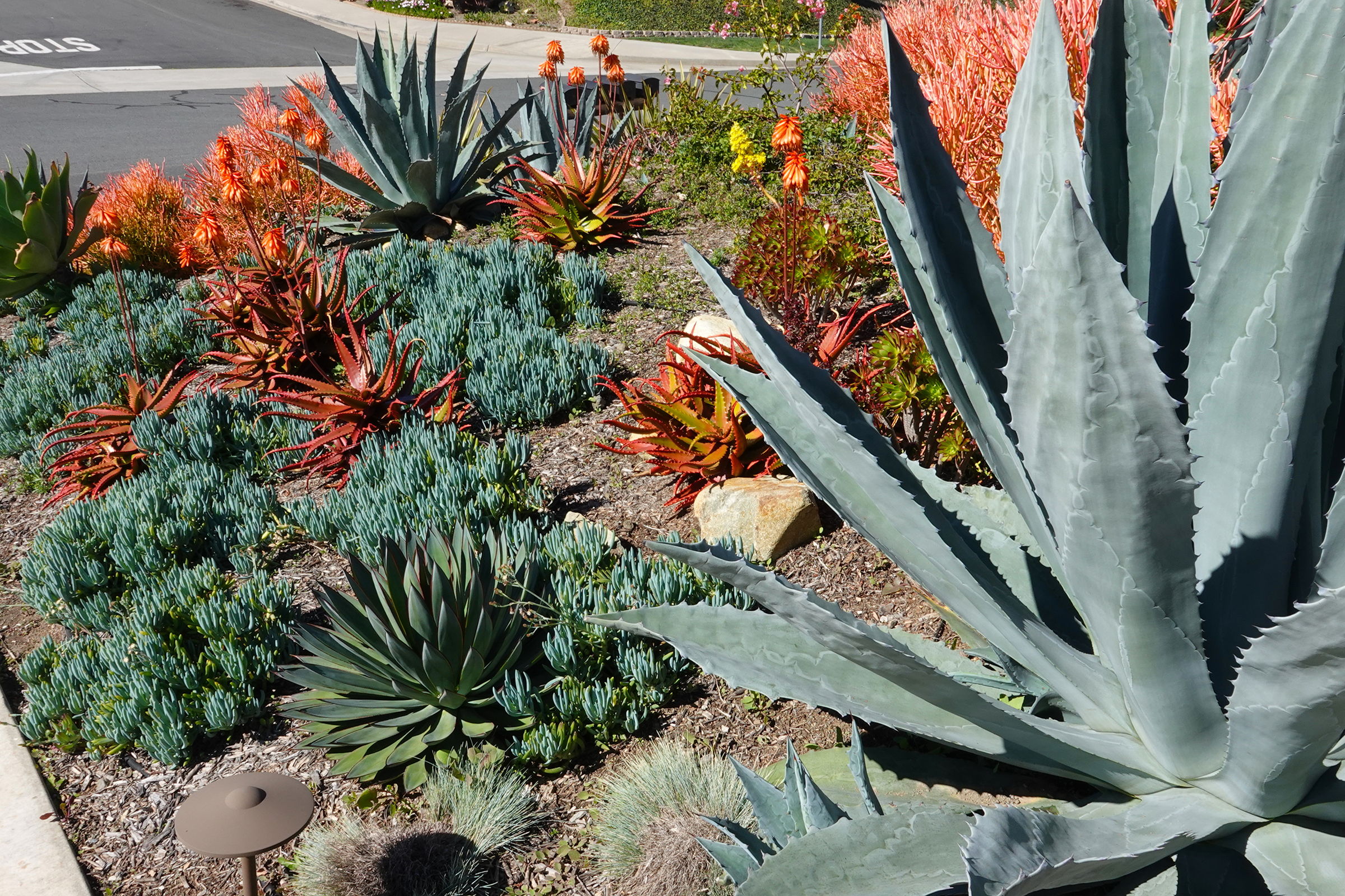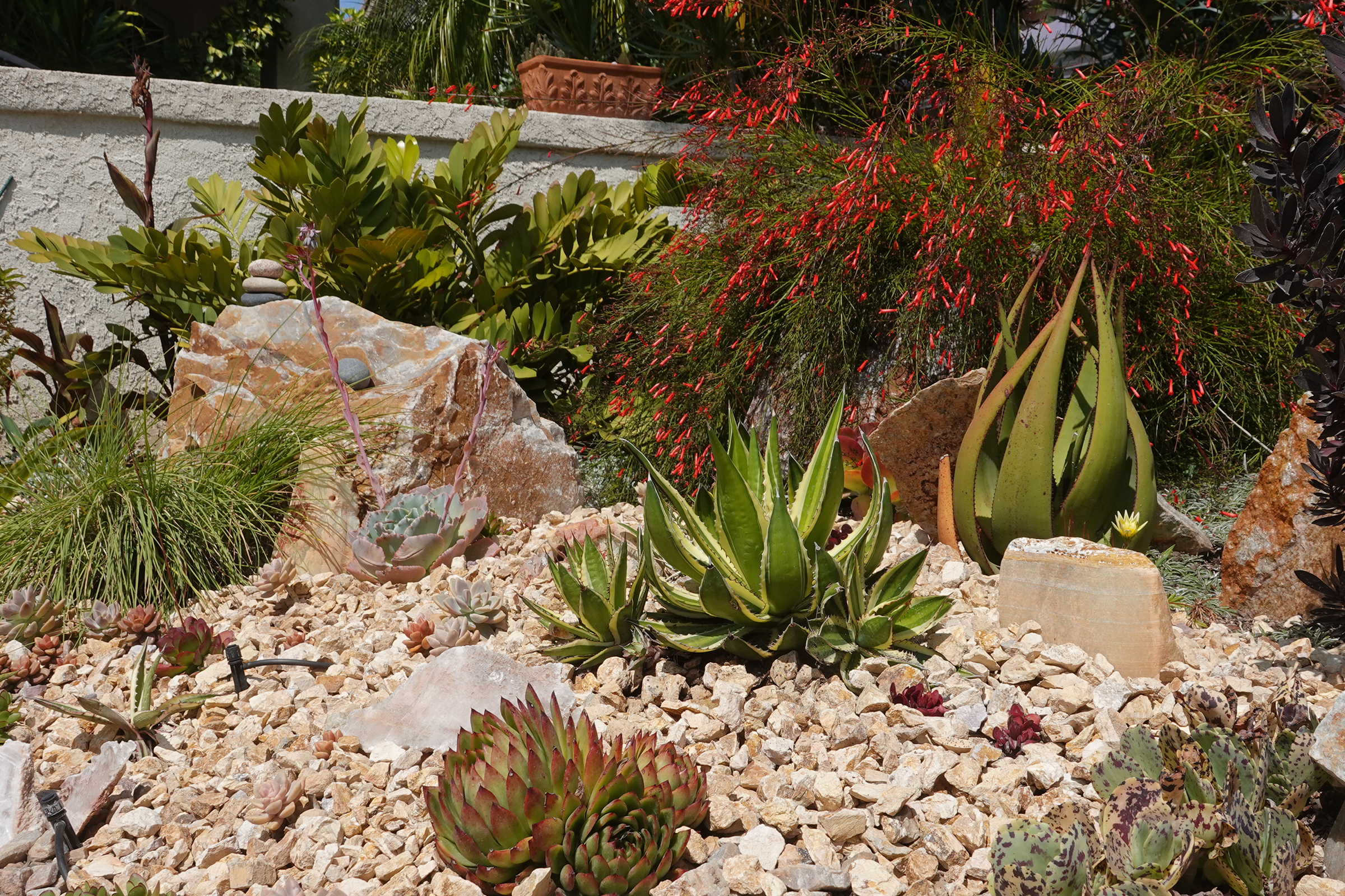 Yes, many Los Angeles water agencies offer rebates for removing turf and installing water-saving landscaping like this one.