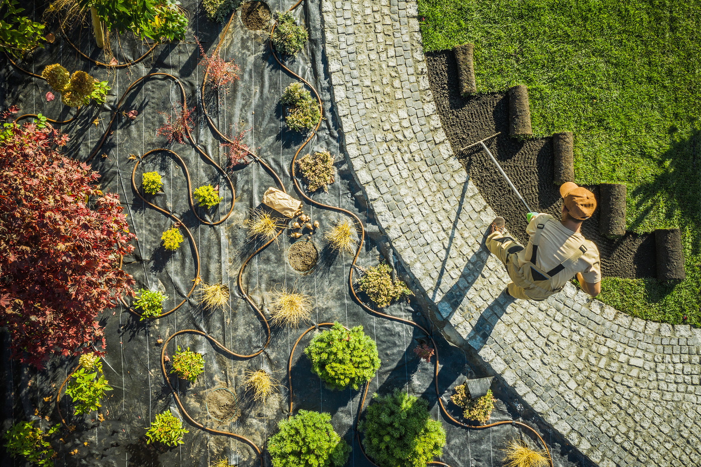 Everything from layout planning, grading, irrigation, plant selection, sod, lighting, patios, fencing, and even edible gardens—fully tailored to your property.